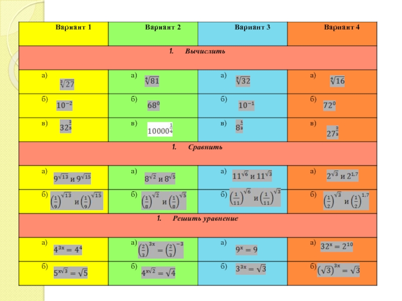 - формирование навыков применения свойств степени при выполнении упражнений.