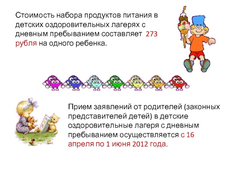 Прием заявлений от родителей (законных представителей детей) в детские оздоровительные лагеря с дневным пребыванием осуществляется с 16 апреля по 1 июня 2012 года.