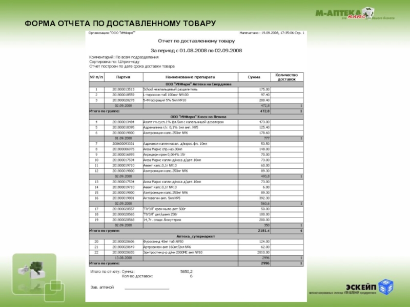 «Отчет по курьерам», «Отчет по доставленному товару», «Отчет по клиентам».