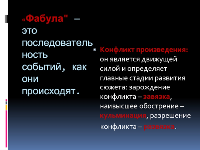 Слайд 5«Фабула" — это последовательность событий, как они происходят.