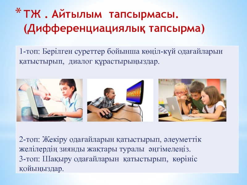 Слайд 6ТЖ . Айтылым тапсырмасы. (Дифференциациялық тапсырма)