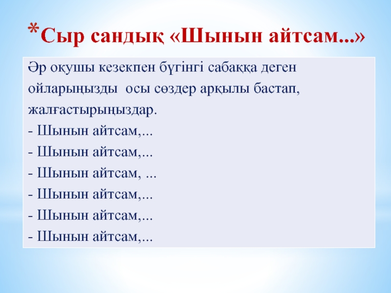 Слайд 3Сыр сандық «Шынын айтсам...»