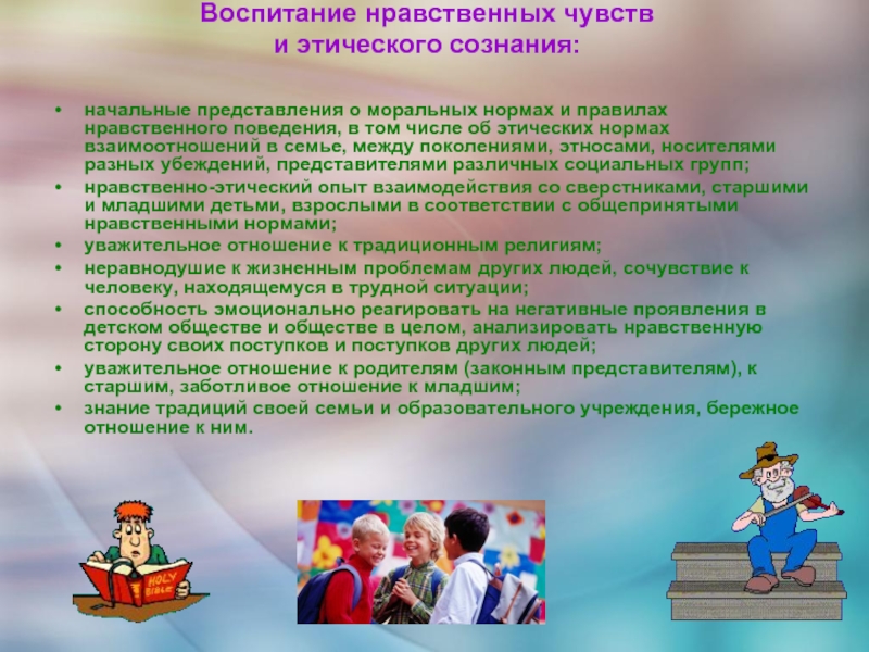 начальные представления о правах и обязанностях человека, гражданина, семьянина, товарища.