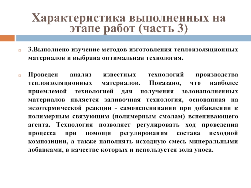 Слайд 8Характеристика выполненных на этапе работ (часть 3)