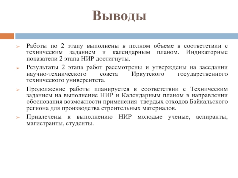 Результаты 2 этапа работ рассмотрены и утверждены на заседании научно-технического совета Иркутского государственного технического университета.