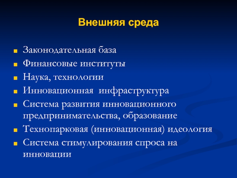 Инновационная (Технопарковая) идеология – система представлений о развитии и функционировании общества, опирающаяся на ценностную ориентацию – создание экономики знаний.