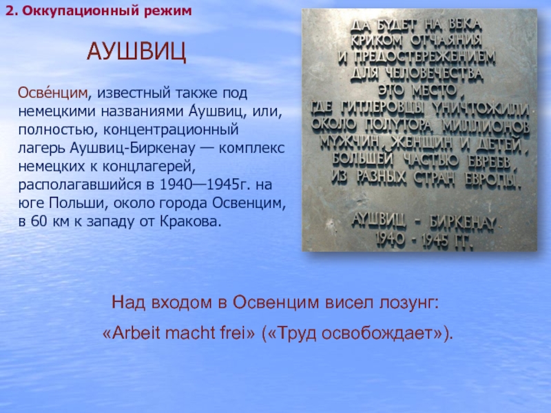 Над входом в Освенцим висел лозунг: