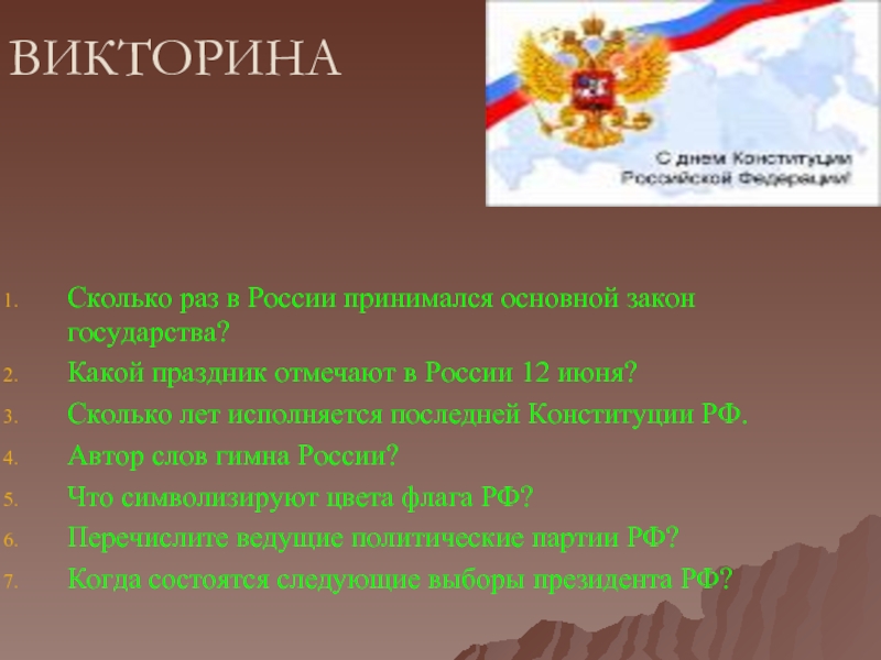 7. 27 декабря 200г. В качестве Государственного гимна была утверждена