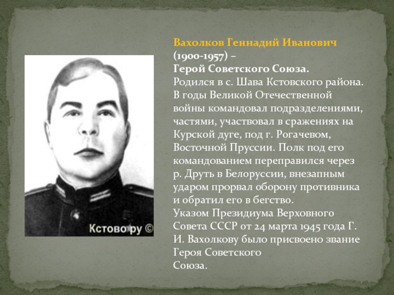 Указом Президиума Верховного Совета СССР от 24 марта 1945 года Г.И. Вахолкову было присвоено звание Героя Советского