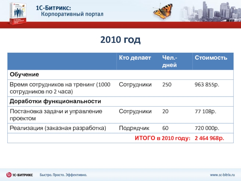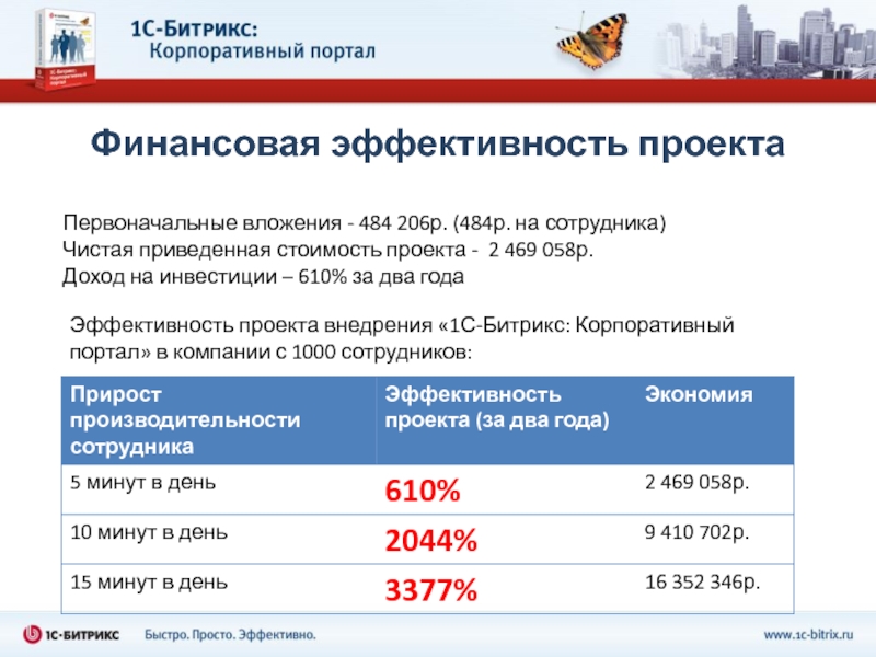 Эффективность проекта внедрения «1С-Битрикс: Корпоративный портал» в компании с 1000 сотрудников: