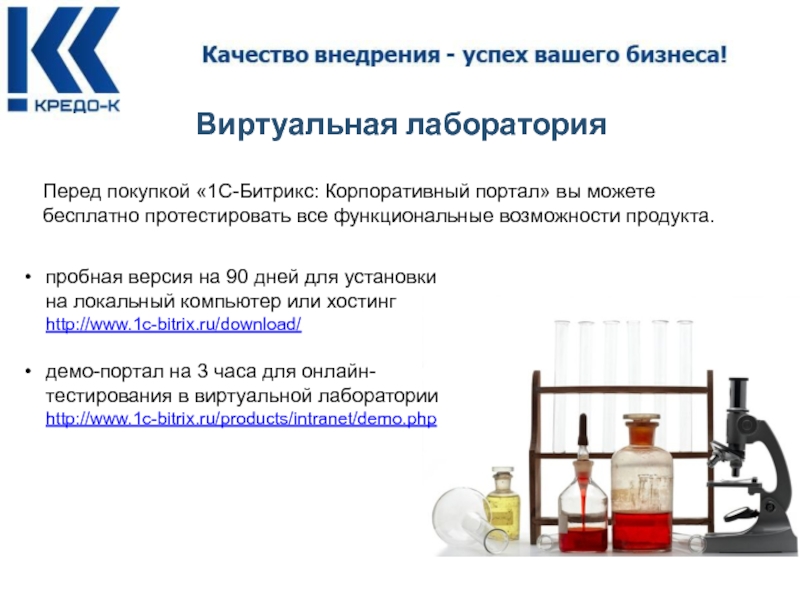 Перед покупкой «1С-Битрикс: Корпоративный портал» вы можете бесплатно протестировать все функциональные возможности продукта.