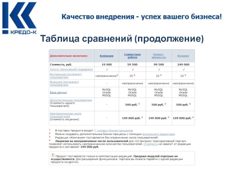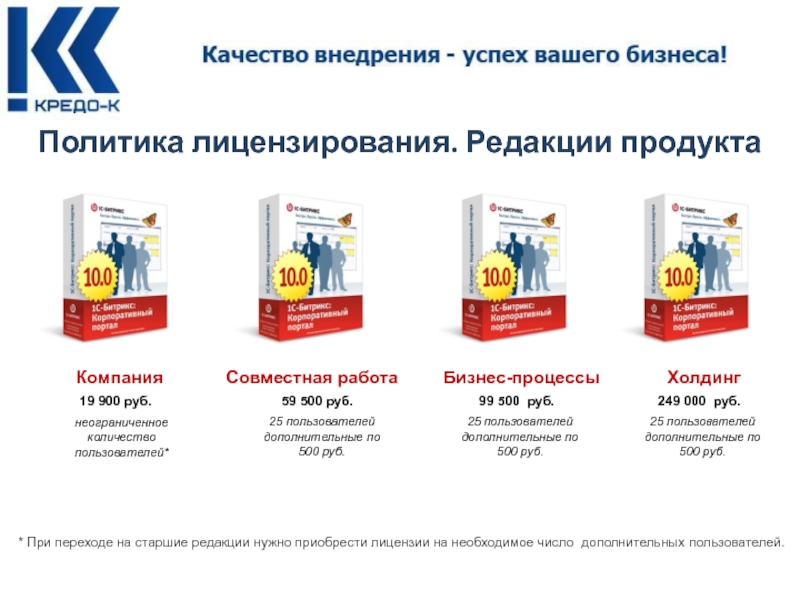 * При переходе на старшие редакции нужно приобрести лицензии на необходимое число дополнительных пользователей.