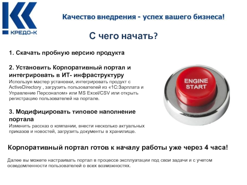 Корпоративный портал готов к началу работы уже через 4 часа!