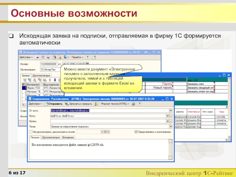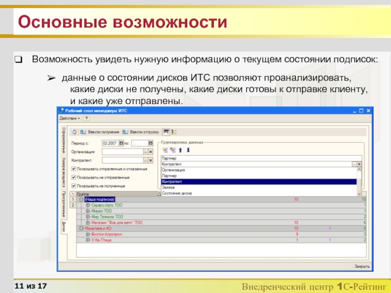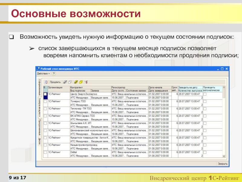 Регистрация основных этапов работы с подписками ИТС в системе: