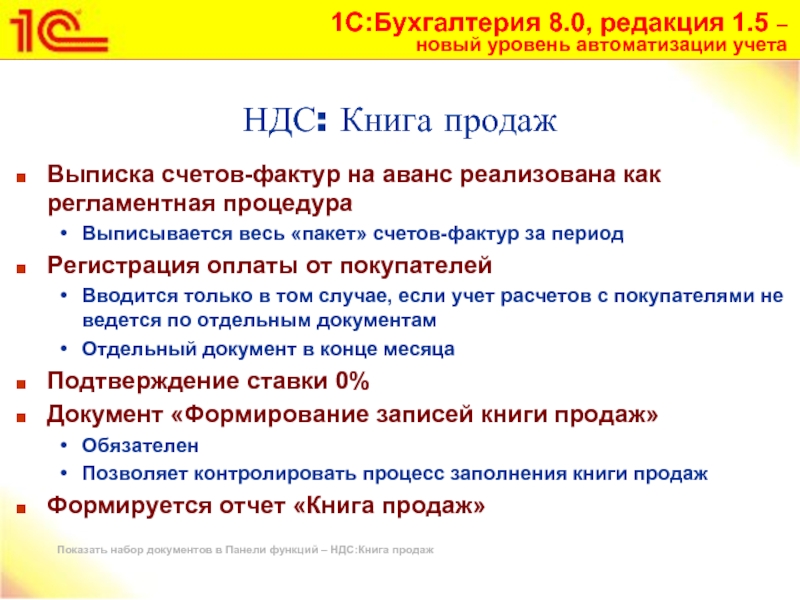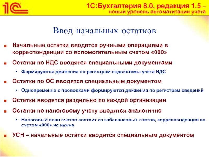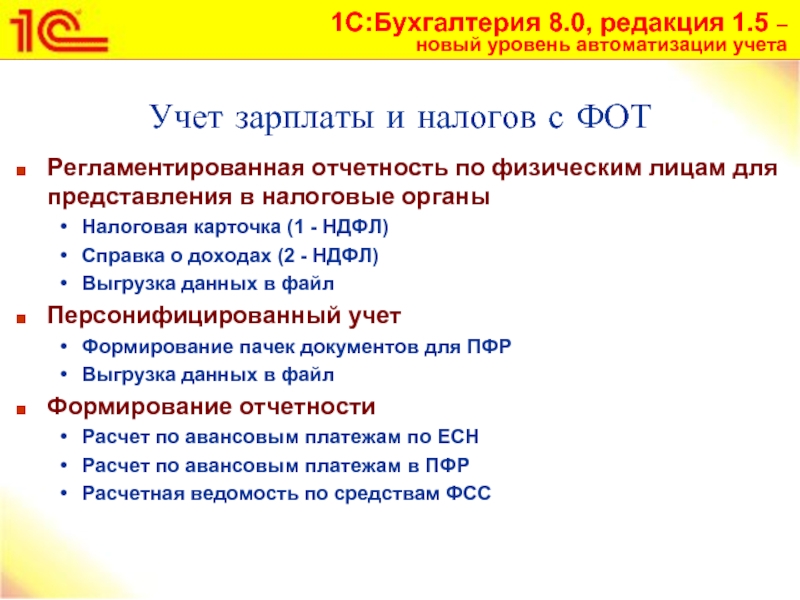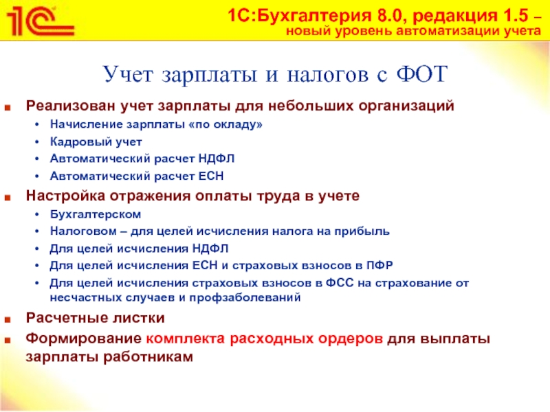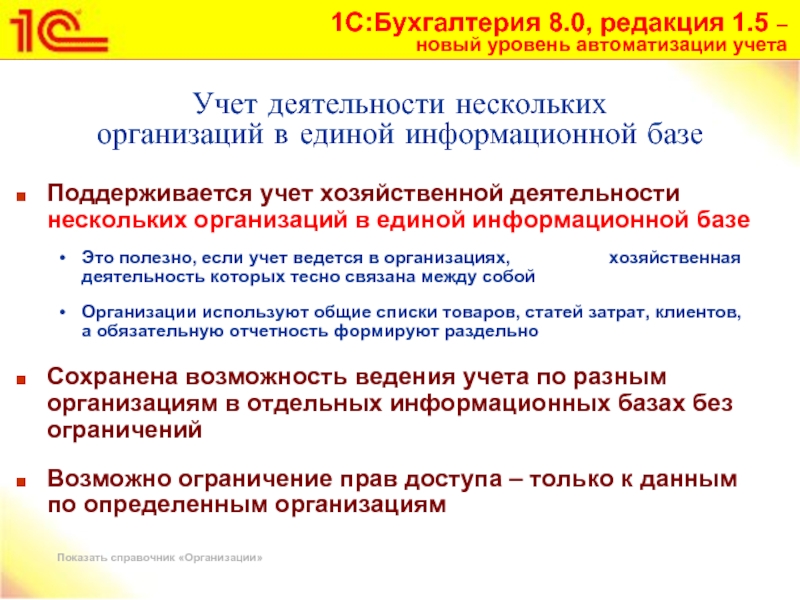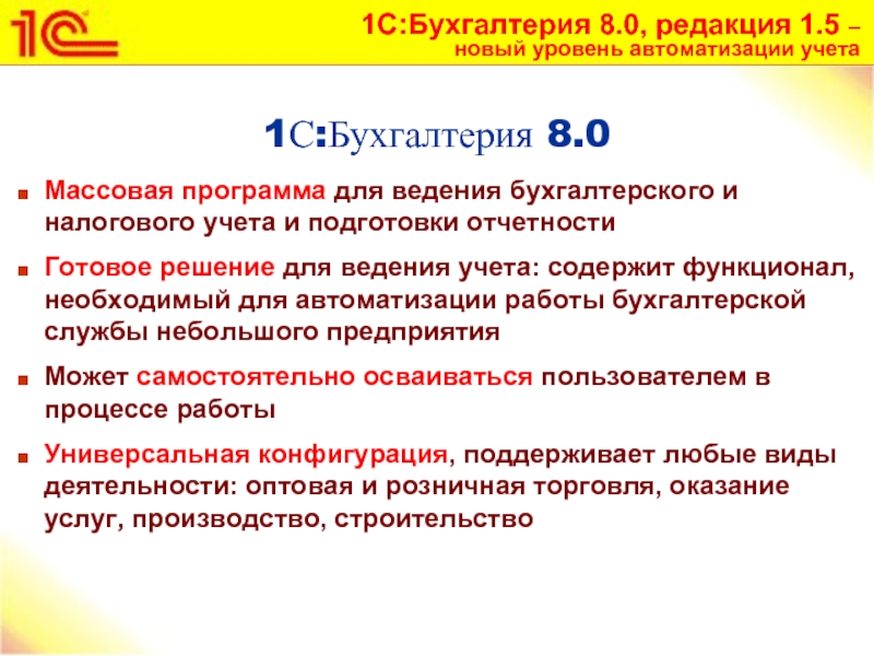 Слайд 11С:Бухгалтерия 8.0, редакция 1.5 –