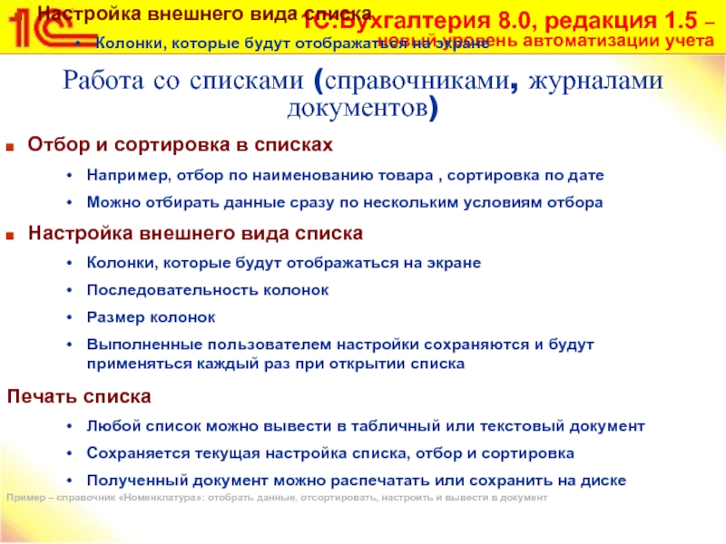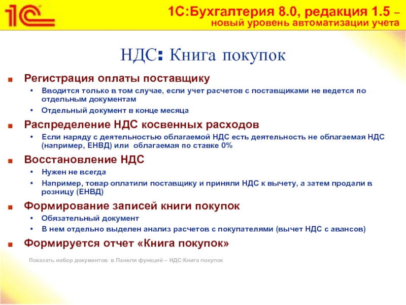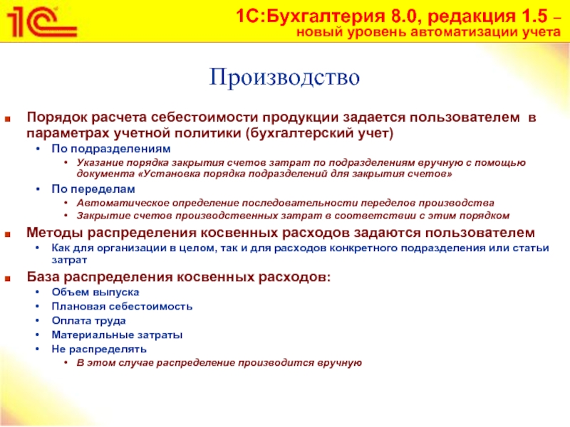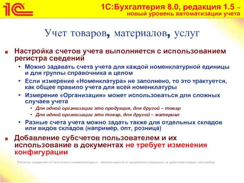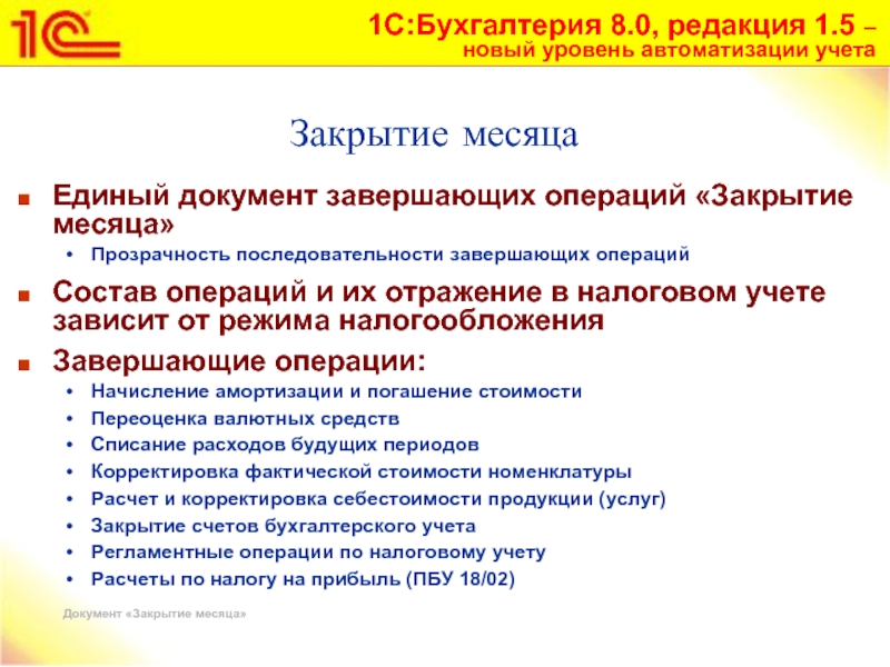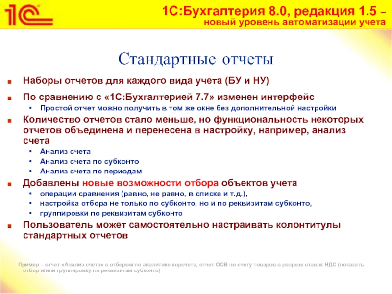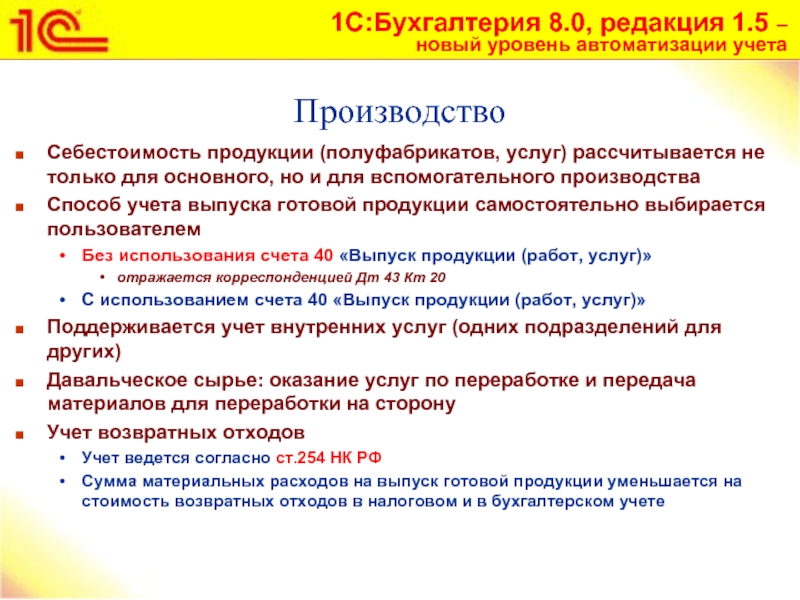 Слайд 11С:Бухгалтерия 8.0, редакция 1.5 –