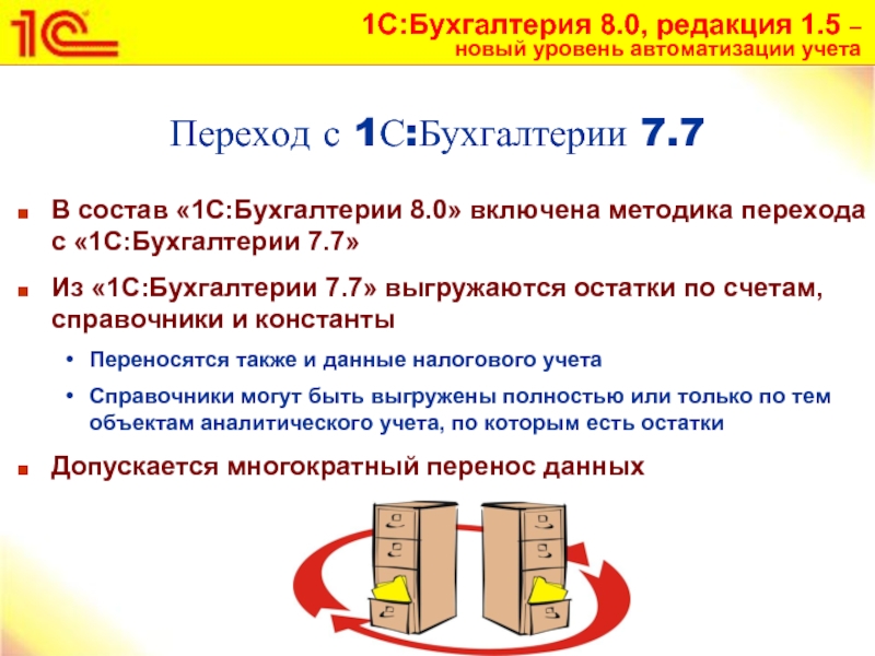 Слайд 32Переход с 1С:Бухгалтерии 7.7