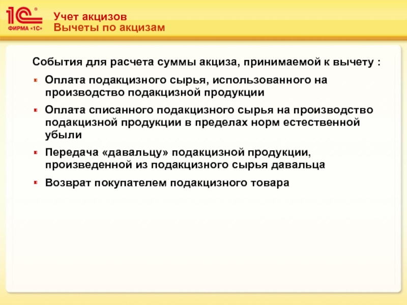 События для расчета суммы акциза, принимаемой к вычету