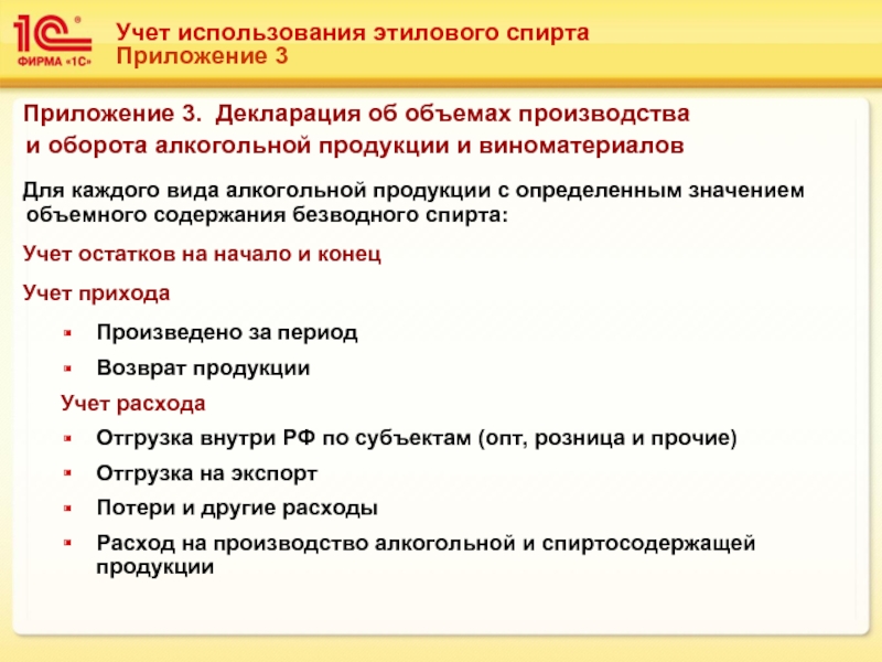 Приложение 3. Декларация об объемах производства и оборота алкогольной