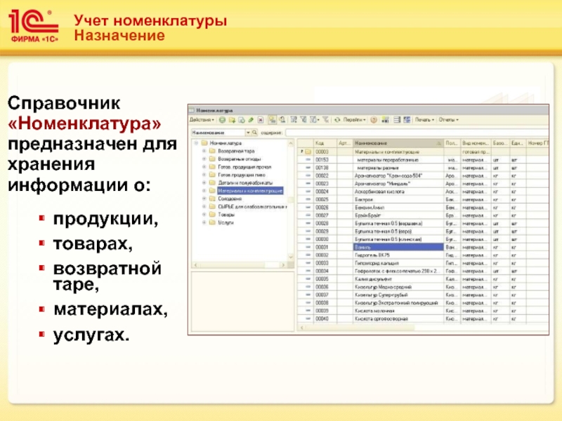 Слайд 10Учет номенклатуры