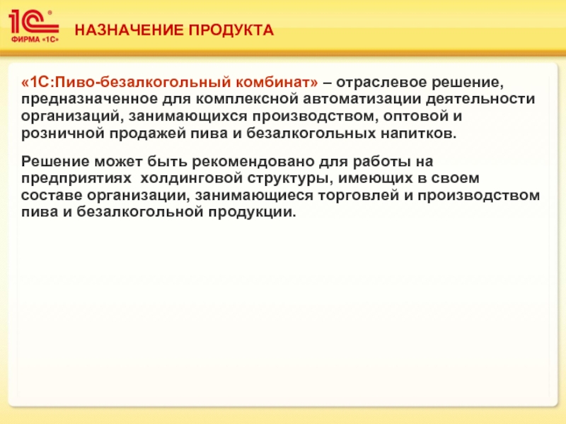 «1С:Пиво-безалкогольный комбинат» – отраслевое решение, предназначенное для комплексной автоматизации деятельности