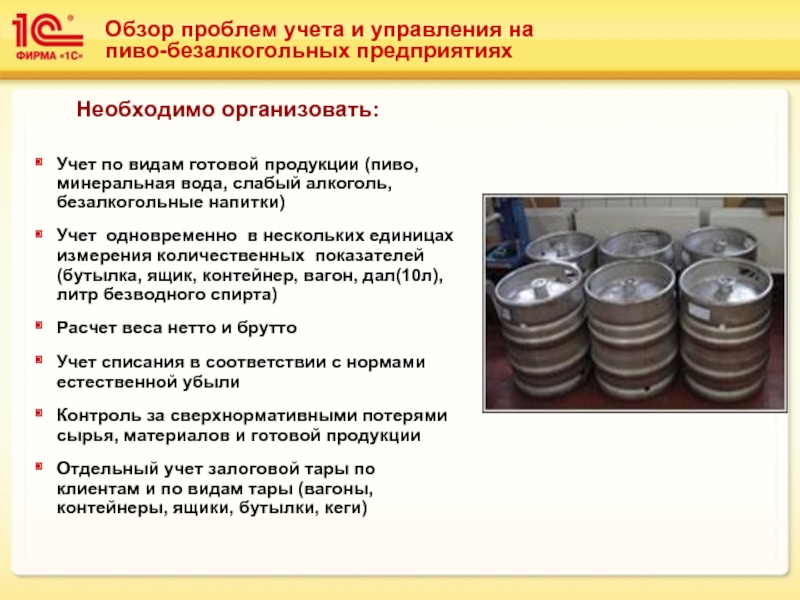 Слайд 7Обзор проблем учета и управления на пиво-безалкогольных предприятиях