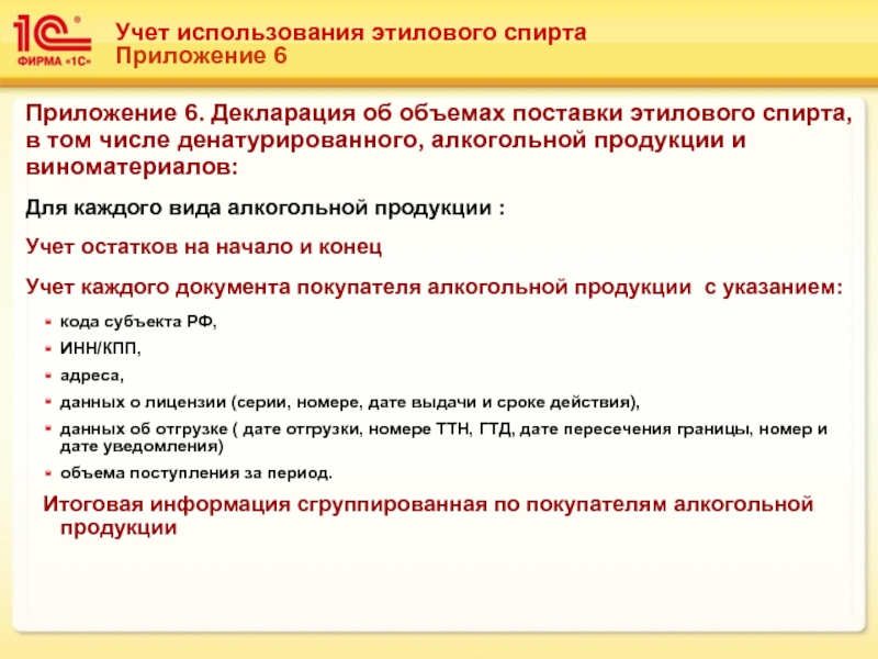 Приложение 6. Декларация об объемах поставки этилового спирта,