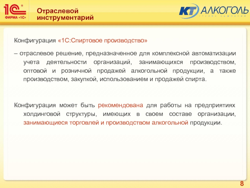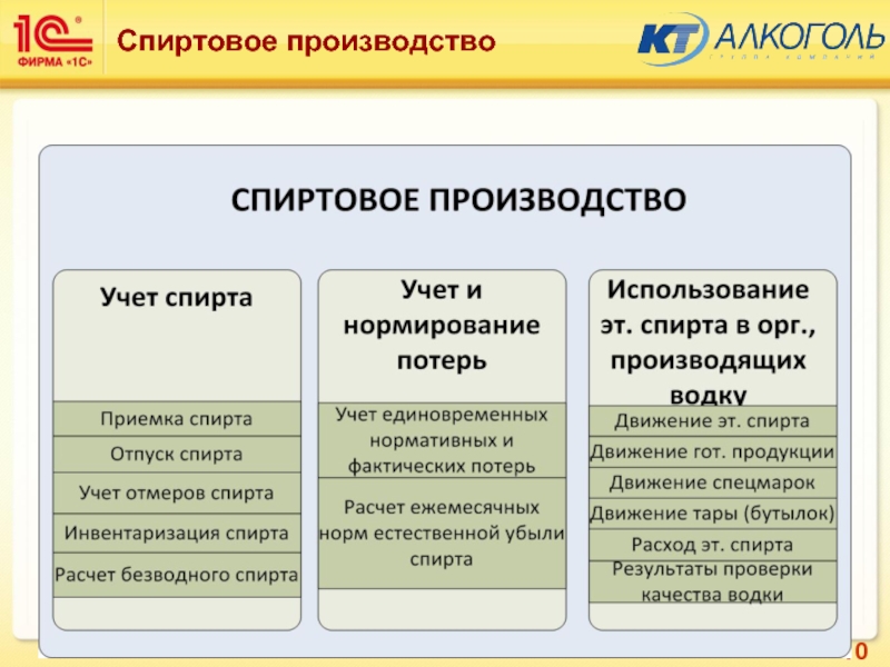 «1С:Спиртовое производство» включает комплекс средств, позволяющих поставить заботу о клиентах на индустриальную основу: