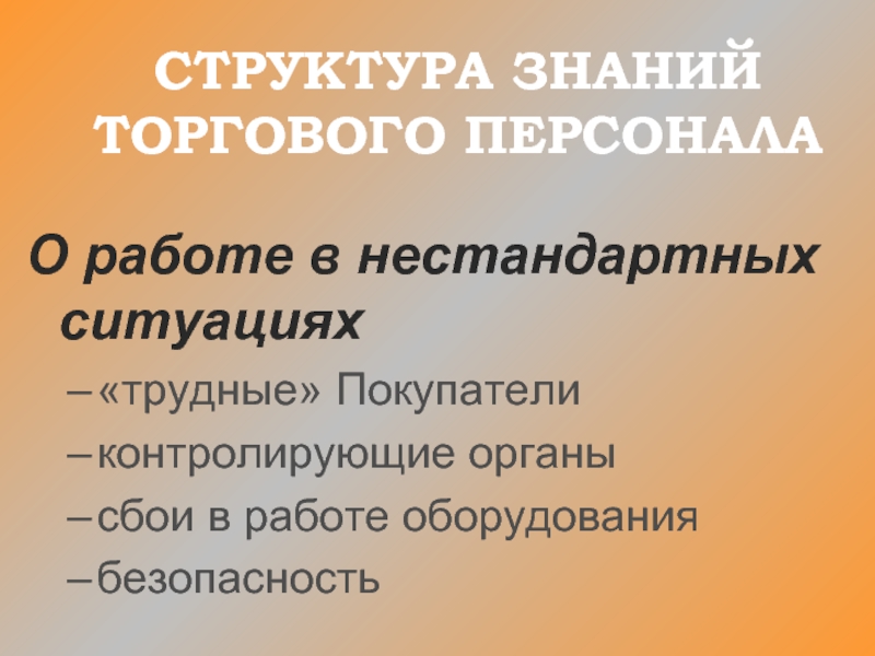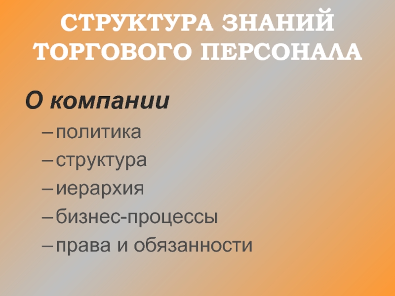 СТРУКТУРА ЗНАНИЙ ТОРГОВОГО ПЕРСОНАЛА