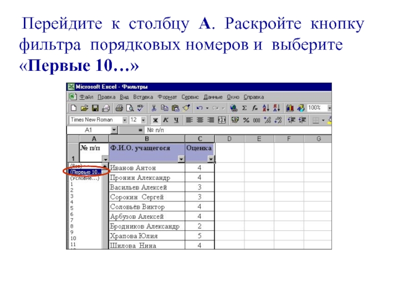 Выделим ячейки А2 и А3. Подведём курсор мыши к правому нижнему углу выделенного диапазона ячеек. Курсор примет форму чёрного крестика.