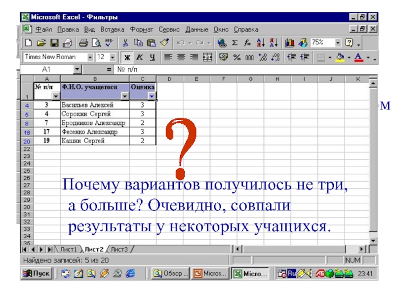 Почему вариантов получилось не три, а больше? Очевидно, совпали результаты у некоторых учащихся.