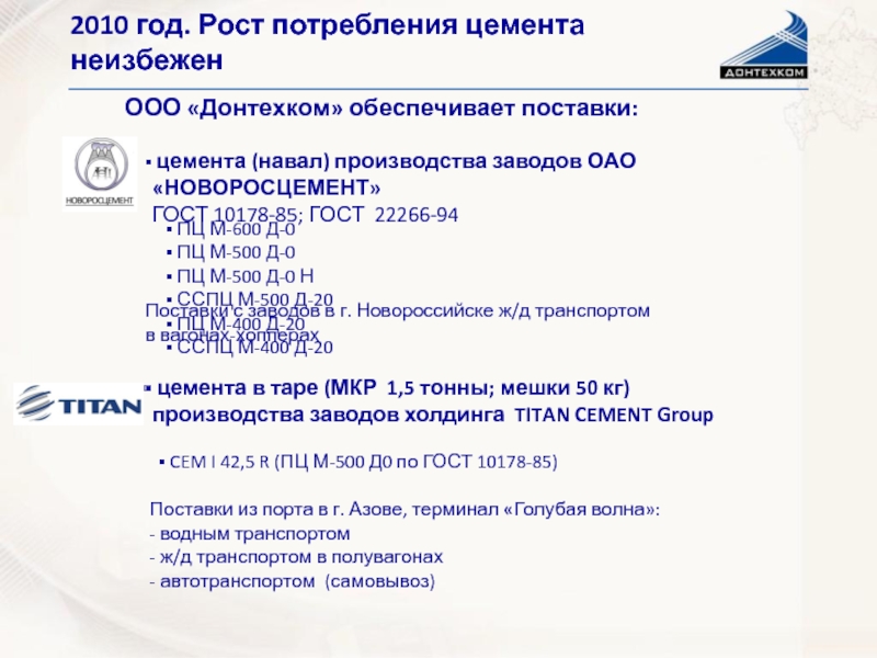 цемента в таре (МКР 1,5 тонны; мешки 50 кг) производства заводов холдинга TITAN CEMENT Group