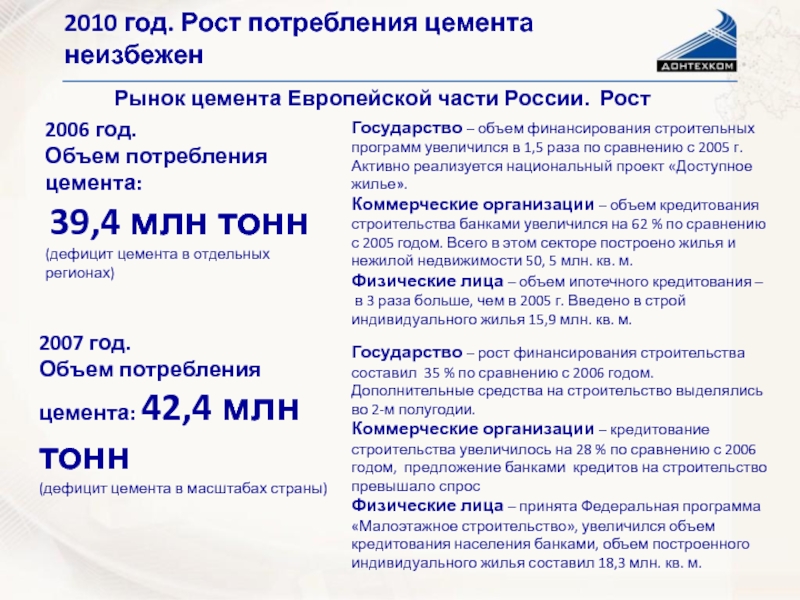(1-е полугодие - дефицит цемента в масштабах страны, 2-е полугодие -временное перепроизводство цемента в отдельных регионах)