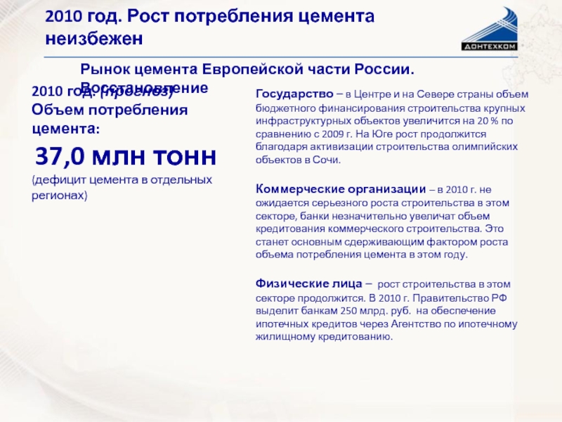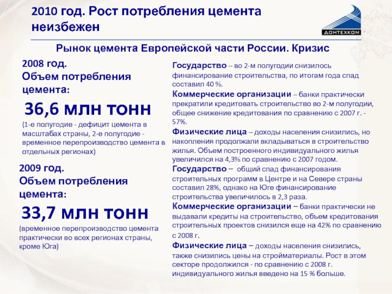 (временное перепроизводство цемента практически во всех регионах страны, кроме Юга)