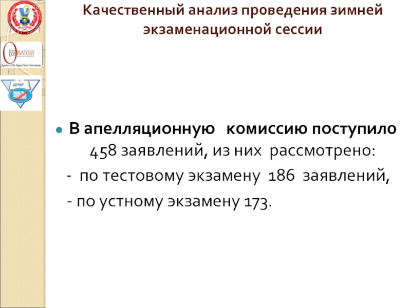 Слайд 6Качественный анализ проведения зимней экзаменационной сессии