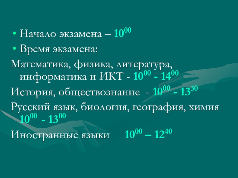 Начало экзамена – 1000