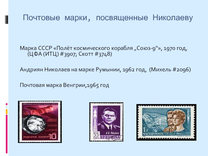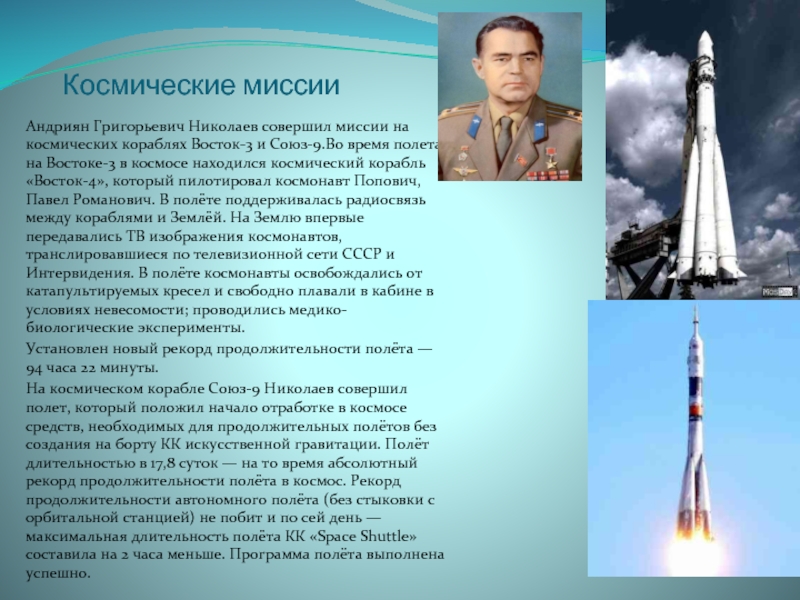 Андриян Григорьевич Николаев совершил миссии на космических кораблях Восток-3 и