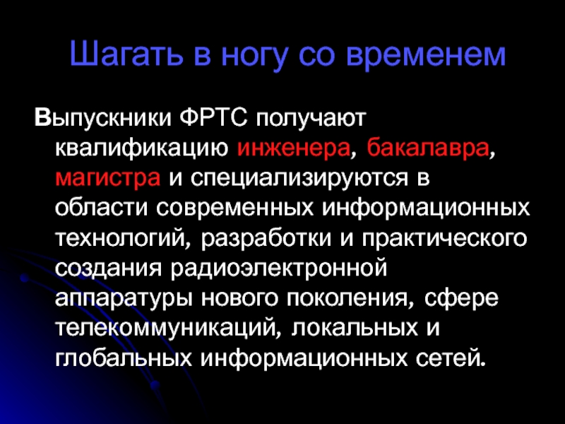 Выпускники ФРТС получают квалификацию инженера, бакалавра, магистра