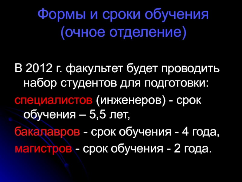 специалистов (инженеров) - срок обучения – 5,5 лет,
