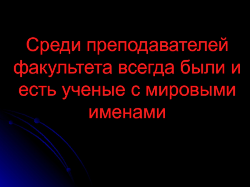 Слайд 16Среди преподавателей факультета всегда были и есть ученые с мировыми именами