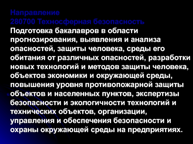 Подготовка бакалавров в области прогнозирования, выявления и анализа опасностей,