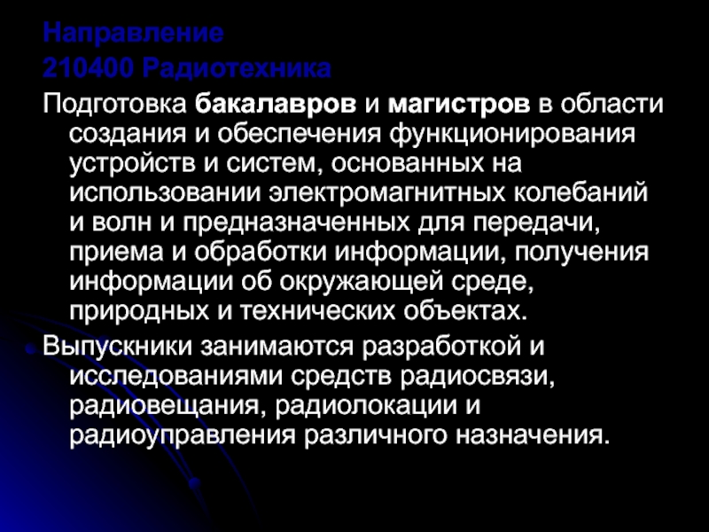 устройств и систем, основанных на использовании электромагнитных колебаний и волн и предназначенных для передачи, приема и обработки информации, получения информации об окружающей среде, природных и технических объектах.