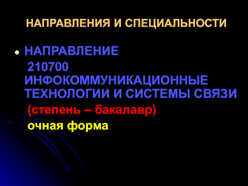 210700 ИНФОКОММУНИКАЦИОННЫЕ ТЕХНОЛОГИИ И СИСТЕМЫ СВЯЗИ
