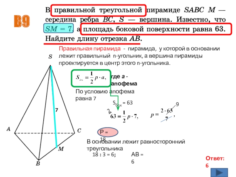 По условию апофема равна 7