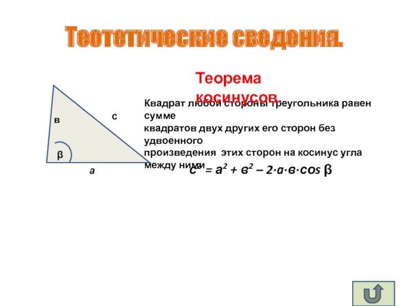 с2 = а2 + в2 – 2·a·в·соs β