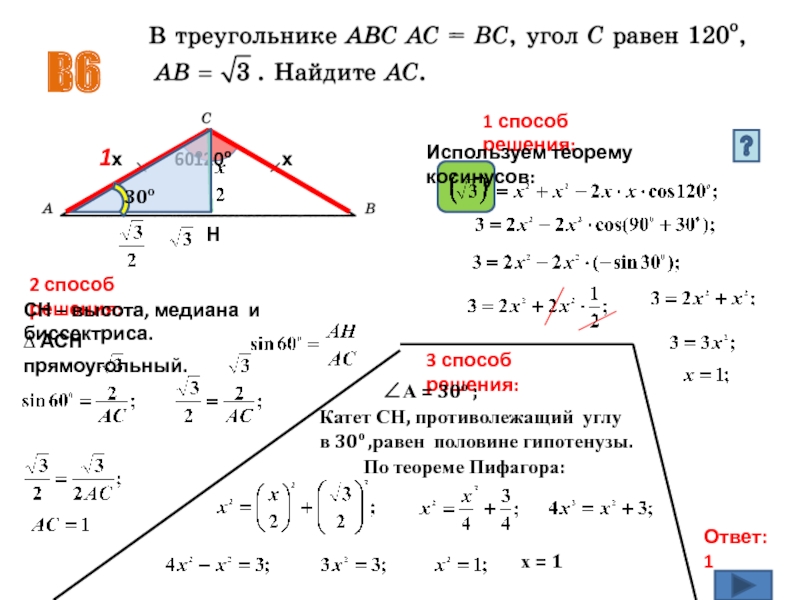∆ АСН прямоугольный.