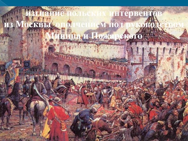 Слайд 6изгнание польских интервентов из Москвы ополчением под руководством Минина и Пожарского