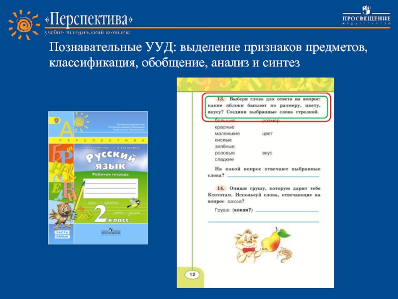 Слайд 47Познавательные УУД: выделение признаков предметов, классификация, обобщение, анализ и синтез