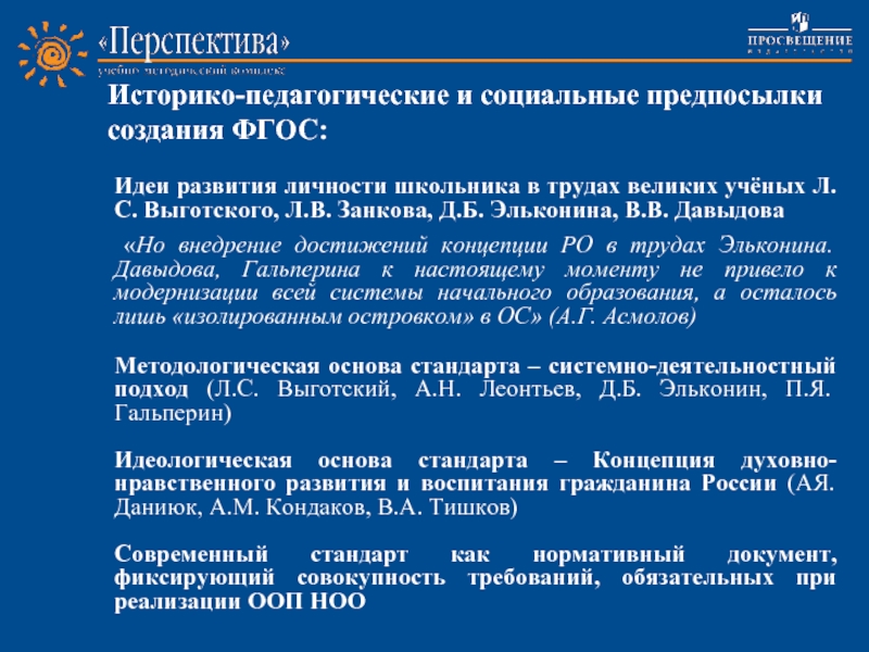 Историко-педагогические и социальные предпосылки создания ФГОС: