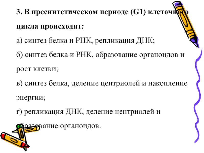 Слайд 303. В пресинтетическом периоде (G1) клеточного цикла происходят: